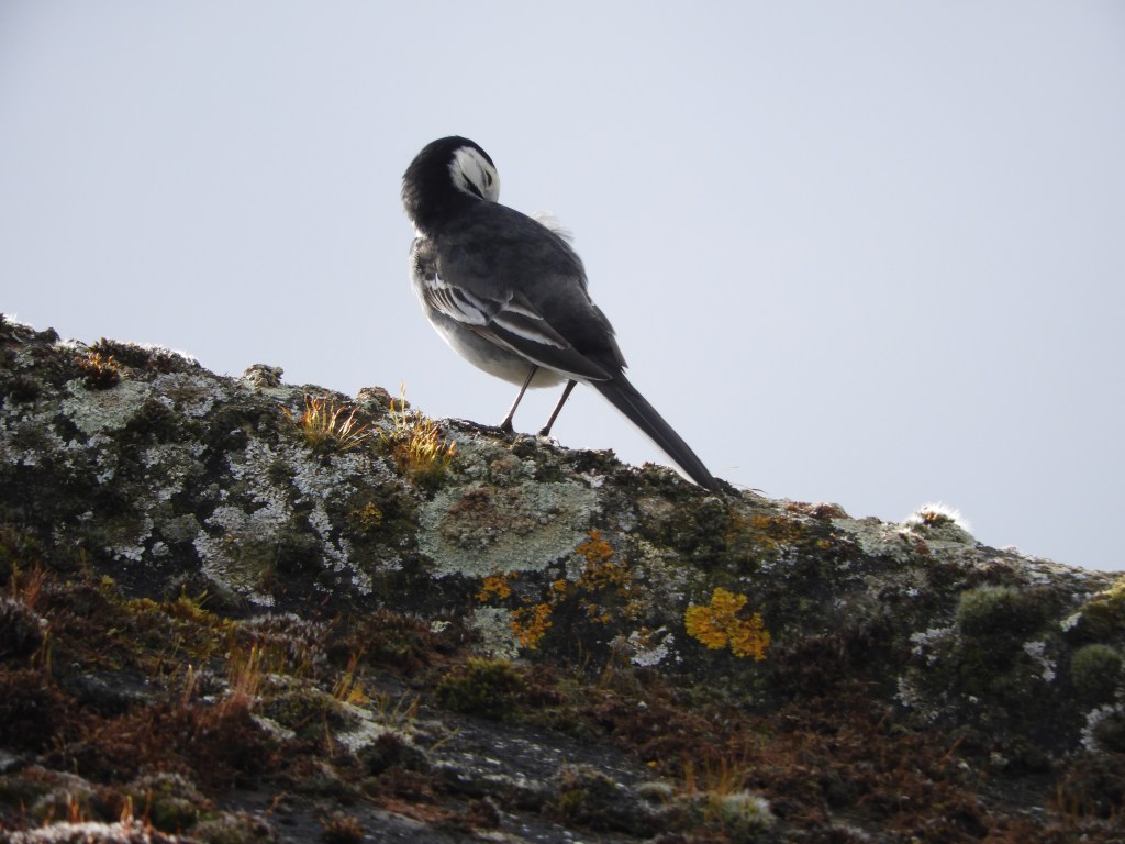 First the Pied Wagtail (Mortacilla alba) and the race yarrellii, is the one most common to Britain, black rump, long black and white tail, black legs, white face, in the Summer a black bib and Winter a black chest band, the male has a Black back and the female dark grey you will have seen this bird walking with a fast run and constantly bobbing it’s tail, can bee seen in large numbers in winter forming evening roosts on buildings like Supermarkets where I guess they are getting the heat from the buildings.